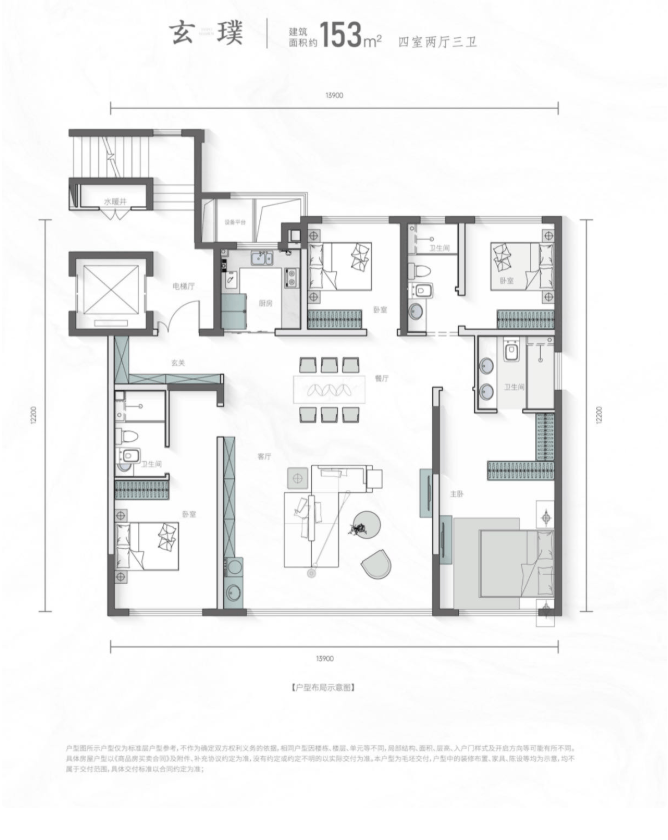 豪华四居户型定位高端,专为追求高品质生活的大家庭打造,户型设计奢华大气,空间布局合理,功能齐全,能够充分满足大家庭的居住需求和生活品质追求。户型南北通透,全明设计,每个房间都能享受到充足的采光和良好的通风,室内空间明亮通透。